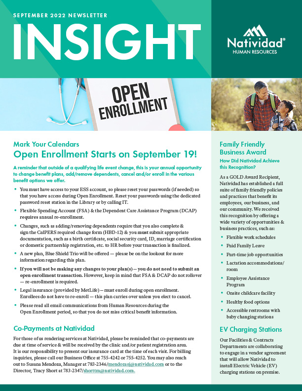 4/12/22 - Save the Date! 2022 Open Enrollment Will Be 9/19 – 10/14/2022.